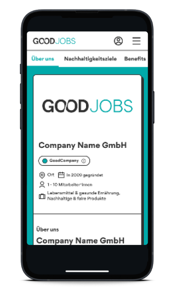 Eure Organisation wird dauerhaft und kostenlos in unser Company Verzeichnis für soziale und nachhaltige Arbeitgeber*innen aufgenommen. Zeigt potentiellen Bewerber*innen, wie ihr künftiger Arbeitsplatz aussieht und auf welche Benefits sie sich freuen können. Überzeugt durch Einblicke in Kultur, Nachhaltigkeitsziele, Bewerbungsprozess und verlinkt zu offenen Stellenanzeigen. Das „GoodCompany Icon“ zeigt auf den ersten Blick, dass ihr unseren Auswahlprozess erfolgreich bestanden habt.